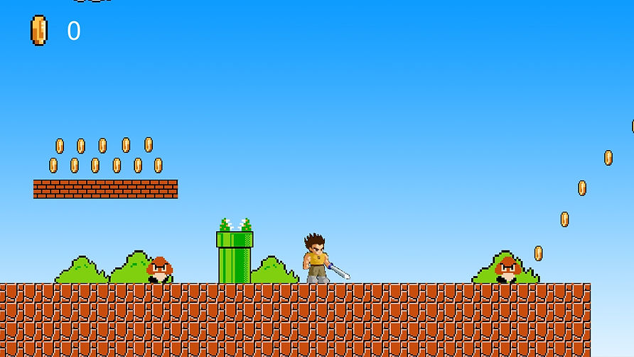 A 2D Platformer where a character from another universe is trapped in Mario's world and he has to survive to find answers and go back to his own universe.